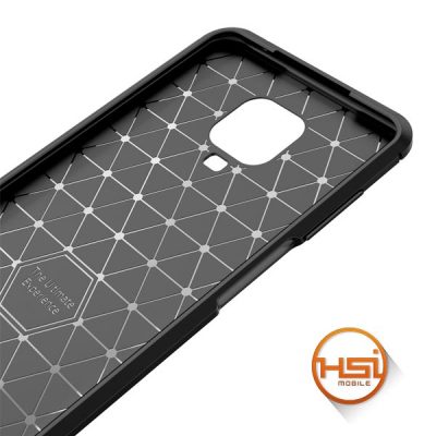 Forro elaborado en material de alta calidad de poliuretano termoplástico de TPU, textura fibra de carbono, extremadamente resistente y proporciona un agarre cómodo y suave para su smartphone. Diseño de bordes elevados que ayuda a proteger la pantalla de arañazos cuando se coloca el dispositivo boca abajo.